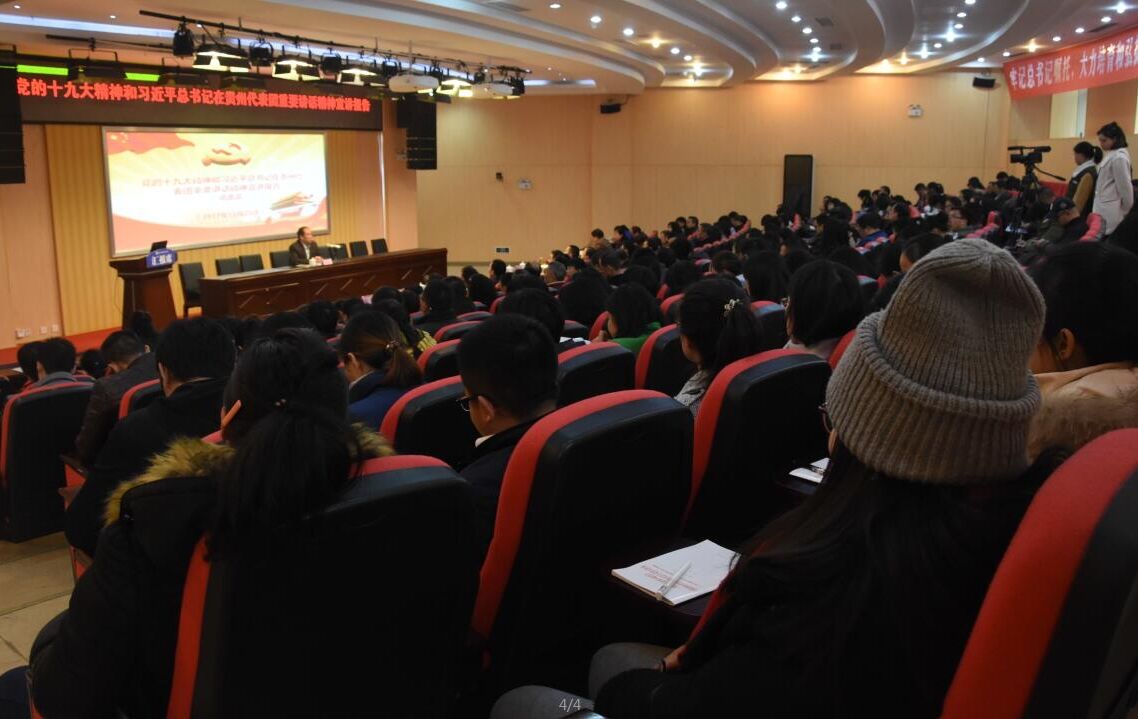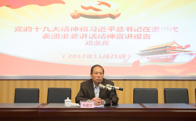 11月21日下午,学校党委在云潭南路校区组织开展了党的十九大精神和习近平总书记在贵州代表团重要讲话精神宣讲报告会。报告由学校党委书记邓惠宾同志主讲。