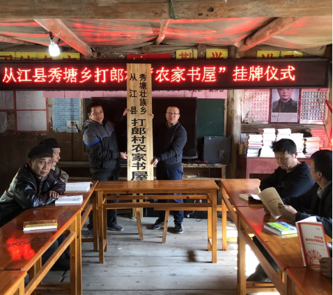 2018年11月23日,在贵州省教育厅统筹安排及贵州省社区教育指导服务中心的支持下,在从江县秀塘壮族乡的具体指导下,打郎村“农家书屋”挂牌仪式在打郎村公所隆重举行,秀塘乡政府党委书记潘明学、政法委书记覃鲁东及打郎村第一书记周显龙、村民委员会主任黄志枉及部分村民代表参加了此次活动。