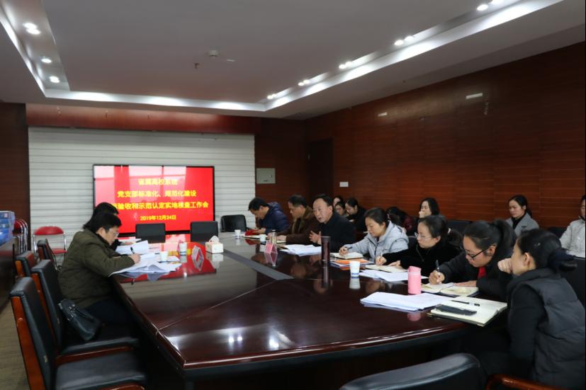 2019年12月24日,省委教育工委组成了以李运才、姚慧娟为第三核查组到我校对党支部标准化规范化建设达标验收和示范认定实地核查工作。党委副书记郭万才、组织部部长张仁俊同志、达标备案的党支部书记及部分师生代表参与了座谈。