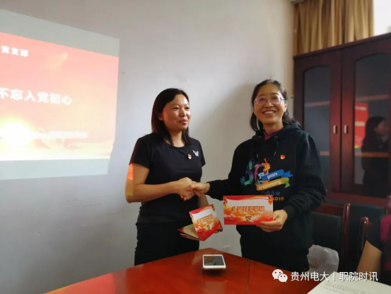随后,组织部党支部书记张仁俊同志和英语、中文党支部书记余胜映同志分别为过“生日”同志送上政治生日贺卡和祝福。