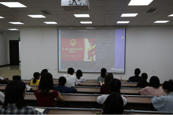 为推进大学生党员队伍建设的系统化、规范化和科学化,切实提高大学生党员发展质量。2020年6月16日晚7点我校第七期入党积极分子培训班在教学科研楼129教室进行。本次入党积极分子培训班由学校党委组织部(党校)主办,经济管理学院党总支承办。因为疫情的影响,本次入党积极分子培训班采取线上与线下同步进行的方式进行,各学院学生党支部书记、入党积极分子共180余人参加了开班仪式的学习。