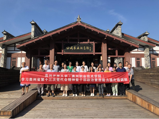 巍巍青杠坡,铁骨铸忠魂,悠悠赤水河,精神永长存。8月12日—16日,贵州开放大学(贵州职业技术学院)学习贵州省第十三次党代会精神暨党员干部政治素质能力提升培训班(第二期)在四渡赤水教学服务中心举行,学校共23名党员同志参加了此次培训。
