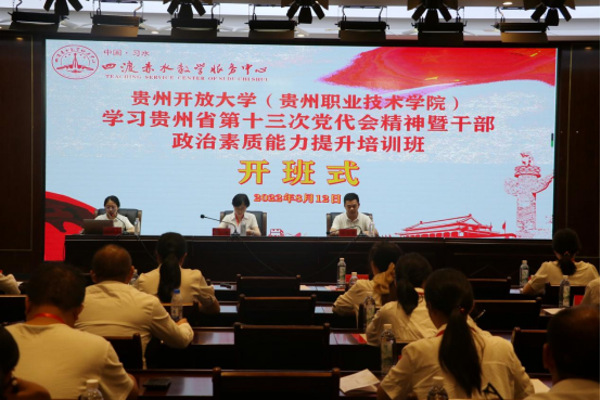 8月12日下午,培训班举行开班仪式,四渡赤水教学服务中心副主任邓志军同志致欢迎辞并为培训班授旗。贵州开放大学(贵州职业技术学院)艺术与设计学院正处级专职组织员刘婕同志作动员讲话并对此次培训提出三点要求:一是切实提高政治站位,充分认识培训意义;二是坚持学思悟践,提升政治素质能力;三是强化纪律作风,展现良好精神风貌。希望各培训学员要珍惜机会、全心投入,以认真的态度、饱满的热情、务实的学风参加培训,以期实现理论素养有新增长、党性修养有新升华、政治素质能力有新提升。