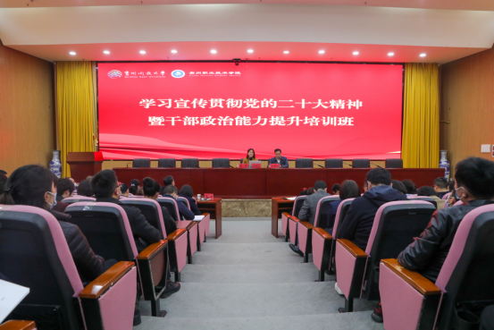 为全面学习宣传贯彻党的二十大精神,切实引导学校教职工把思想和行动统一到党的二十大精神上来,3月15日,我校邀请党的二十大代表袁琴同志莅临我校,围绕党的二十大精神为我校处科级干部、巡察干部作专题讲座。