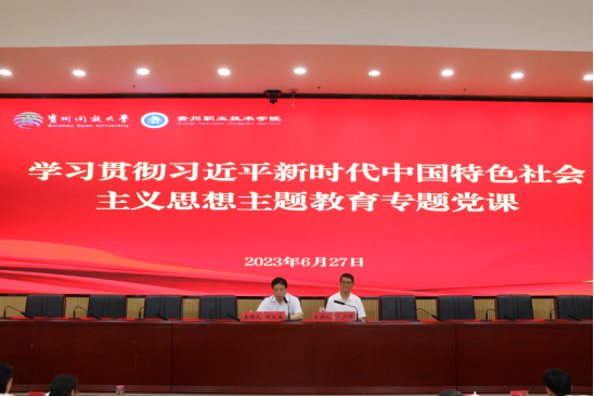 宋广强强调,党的二十大报告强调将职业教育、高等教育、继续教育整合到一起进行系统谋划、一体推进。作为集合三类教育于一体的贵州开放大学(贵州职业技术学院),我们要牢固树立和践行一切从实际出发、经得起实践人民历史检验的政绩观,在主题教育中擦拭初心、分析形势、提高站位、统一思想,推动学校在新时代高质量发展中把握教育之美、提升教育之质,最大程度发挥新型本科大学在特色教育强省中的应尽之责、应有之为。