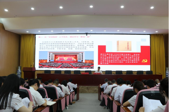 为认真贯彻落实中央、省委关于党员领导干部在学习贯彻习近平新时代中国特色社会主义思想主题教育中讲好专题党课的部署要求。2023年6月27日,学校党委书记宋广强以“切问时代 近思贵开 高质量交出在主题教育中的‘四张答卷’”为题讲授学习贯彻习近平新时代中国特色社会主义思想主题教育专题党课。主题教育省委第十九巡回指导组组长任建生,组员杨宣东、赵治国到会指导。学校党委班子成员、副科级以上干部、思政课教师代表、专业教师代表、辅导员代表、“双带头人”教师党支部书记代表、入党积极分子、发展对象和预备党员代表参加会议。会议由学校党委副书记钱庆生主持。