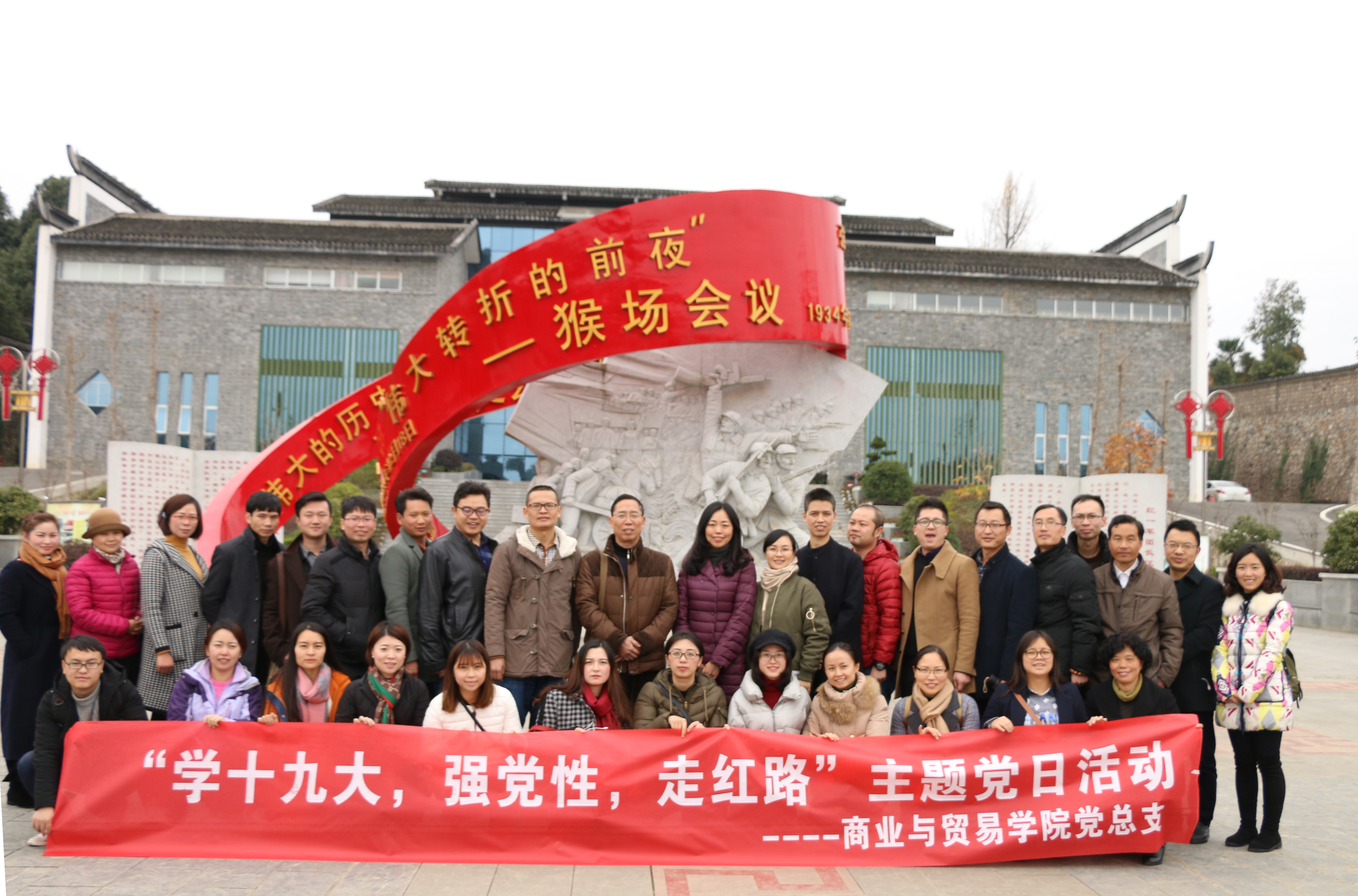 2017年12月5日,商业与贸易学院党总支书记刘德刚带领学院党委委员、全体党员、教师代表到贵州省瓮安县猴场会议会址参观红色教育基地,接受革命传统教育。