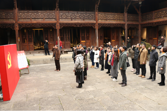 在猴场会议会址内,大家瞻仰了红色遗址,聆听了讲解员讲解猴场会议的形成和发展历程以及老一辈革命家和先烈们积极投身革命的光辉事迹,重温了那一段波澜壮阔的革命历史。通过参观许多珍贵的历史遗物和图片影像资料,一幅幅逼真的画面,一幕幕感人的革命场景,深深感染了每一位参观的党员干部,让大家重温了那段激情燃烧的红色岁月,追思和学习了革命先烈崇高的品格风范,让大家经受了一次灵魂的洗礼和升华,进一步激发党员的责任感和使命感。在猴场会议会址,刘德刚书记带领全体党员同志重温了入党誓词,庄严肃穆的宣誓活动,使每一位党员再一次接受心灵的洗礼。