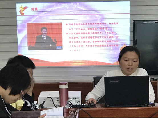 6月11日,基础部党总支英语、中文党支部余胜映同志在行政楼7楼会议室上了一堂《不忘初心、牢记使命》的微党课,基础部党总支全体同志参加了本次活动。