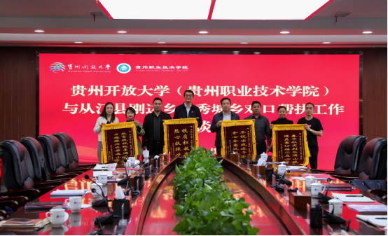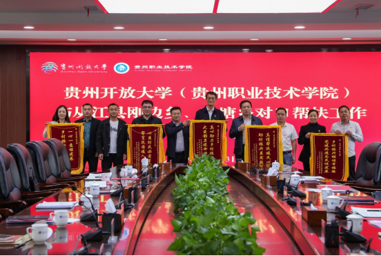 最后,我校帮扶的从江县刚边乡、秀塘乡帮扶村向学校送上锦旗,向学校多年来的帮扶表达谢意。